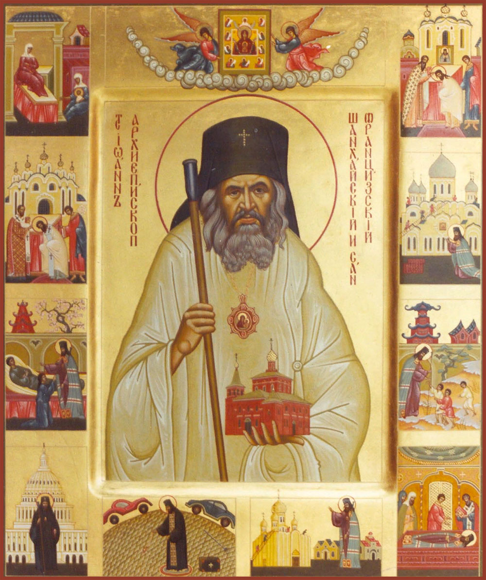 Your care for your flock in its sojourn prefigured your prayers, / which you always offer up for the whole world. / Thus we believe, having come to know your love, O holy hierarch and wonderworker John. / Wholly sanctified by God through the ministry of the all-pure Mysteries, / and ever strengthened by them yourself, / you hastened to the suffering, O healer, easing their afflictions. / Hasten now to help us, who honor you with all our heart.