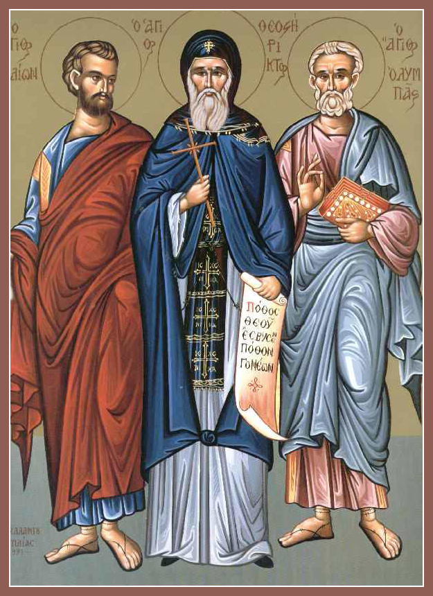 Holy Apostles, Erastus, Olympas, Herodion, Sosipater, Quartus and Tertius, / entreat the merciful God, / to grant our souls forgiveness of transgressions. Tone 3